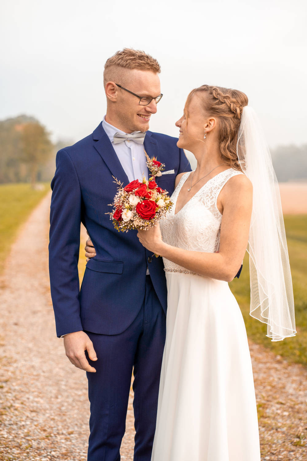 Ein einfaches Hochzeits-Fotoshooting abseits der Hochzeit im Anzug und Brautkleid für meine langjährigen Freunde Theresa & Rupert.